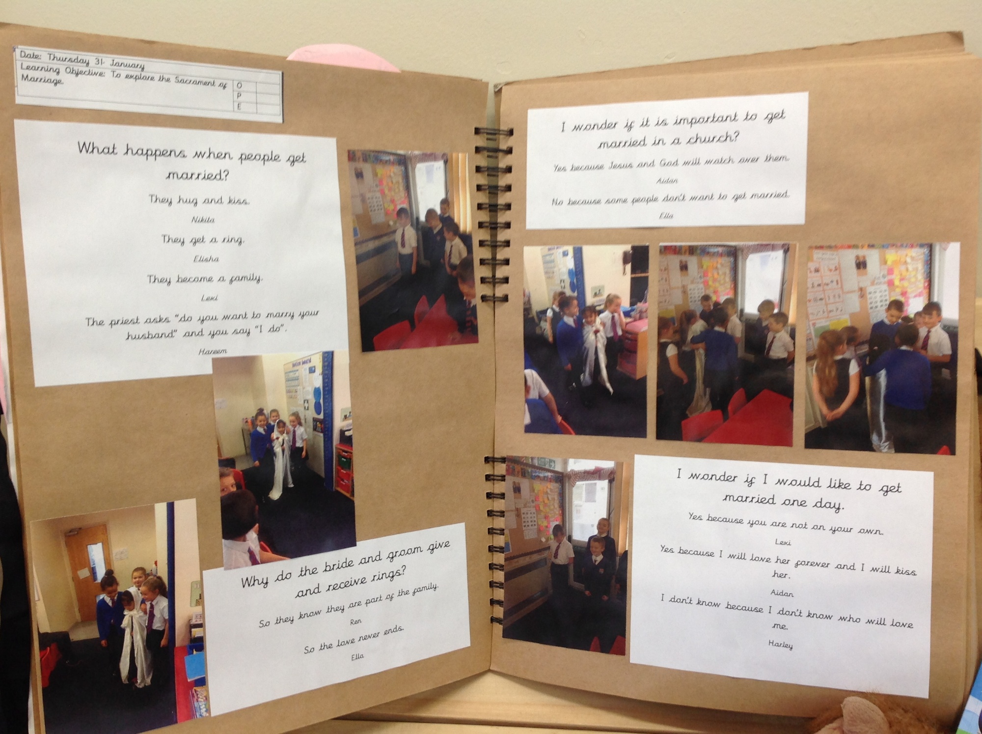 You will find our 'I Wonder' board displayed by our classroom focal point. On this board you will find a wide range of deep, thought-provoking and reverent questions that children have either responded to or thought of. This is a wonderful chance for children to share their ideas and also allow us to discuss questions about our faith that may be difficult to answer. Father Michael is invited in the hope that he can answer some of our questions.